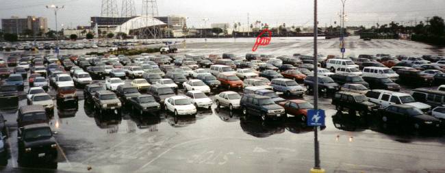 This is a little game they use to mention on the monorail. "Try to find the family car." I did!! That's my truck!! This picture was taken on December 6, 1997. The parking lot no longer looks like this. It's going to be part of the new Disney theme park in Anaheim.